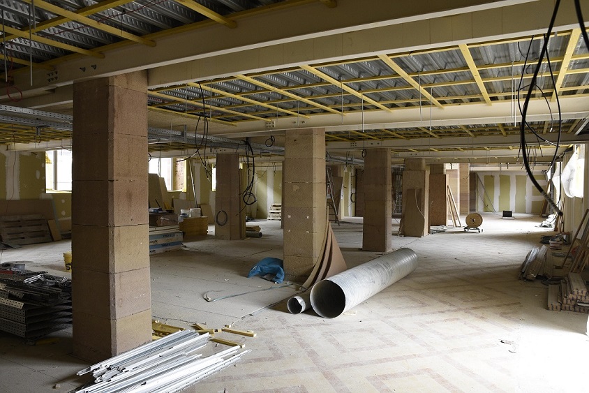 Quelques mois après l'achèvement du gros oeuvre, les espaces de la future bibliothèque de la Manufacture prennent forme ! Les bureaux, salles de travail en groupe et de formation sont maintenant délimités par des cloisons. Visite en image.